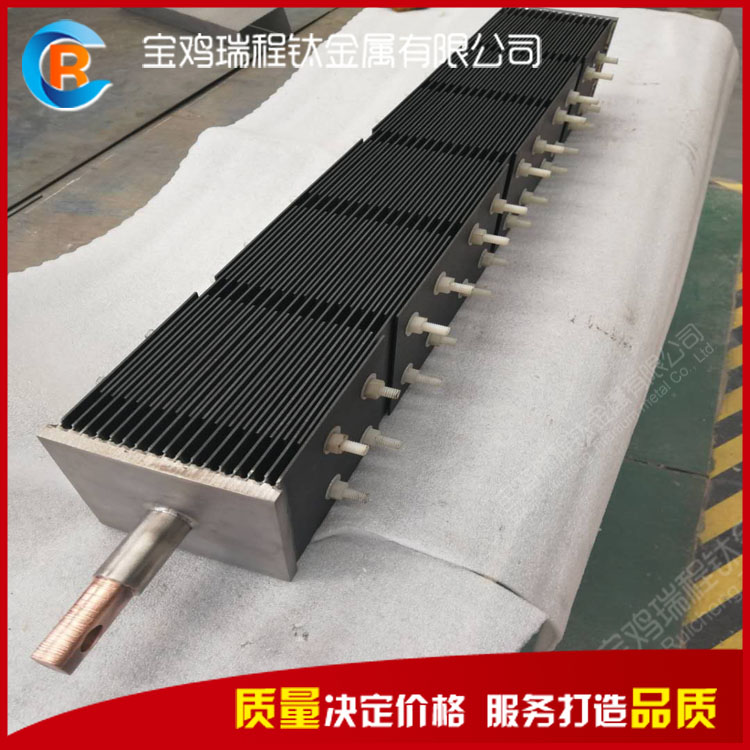 阳极材料可以选用涂层钛电极。混合氧化物涂层钛阳极,使用寿命长,此种涂层钛阳极的过电位也比较低,析氯电流效率高,节能效果好。